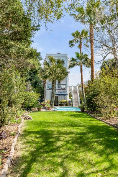 Many of the rooms are designed to open up to the natural beauty of Sullivan's Island. The bonus room has custom built-in storage and french doors that lead out onto a balcony overlooking the pool and extensive garden.